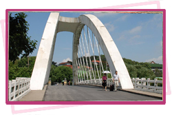 二泉桥:连通小岛与鼋头渚的二泉桥始建于上世纪40年代后期。由钱钟书之父,原无锡总商会会长钱孙卿及其孪生兄弟,用60寿辰的礼金捐建而成。二泉即二钱,过去的文人和社会名流不谈钱,钱泉相通,故名二泉。接待大厅所在的映月 楼,与二泉桥两相呼应,似有二泉映月的古曲经久弹唱。 |